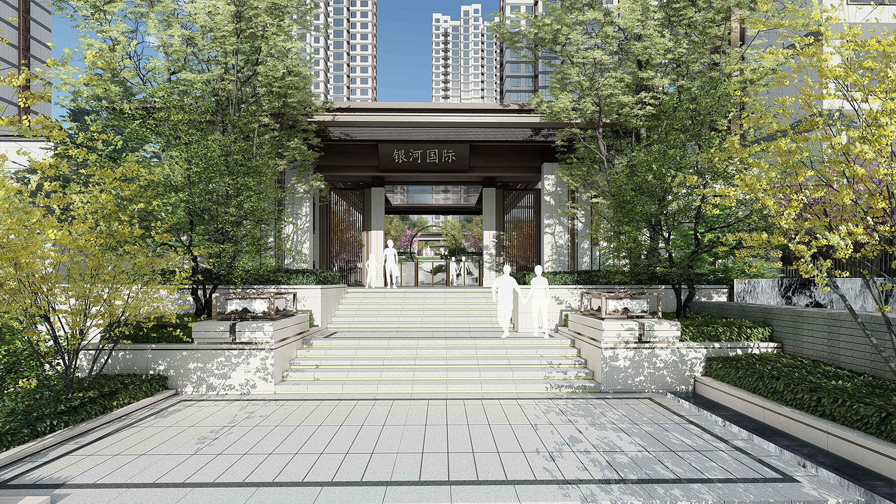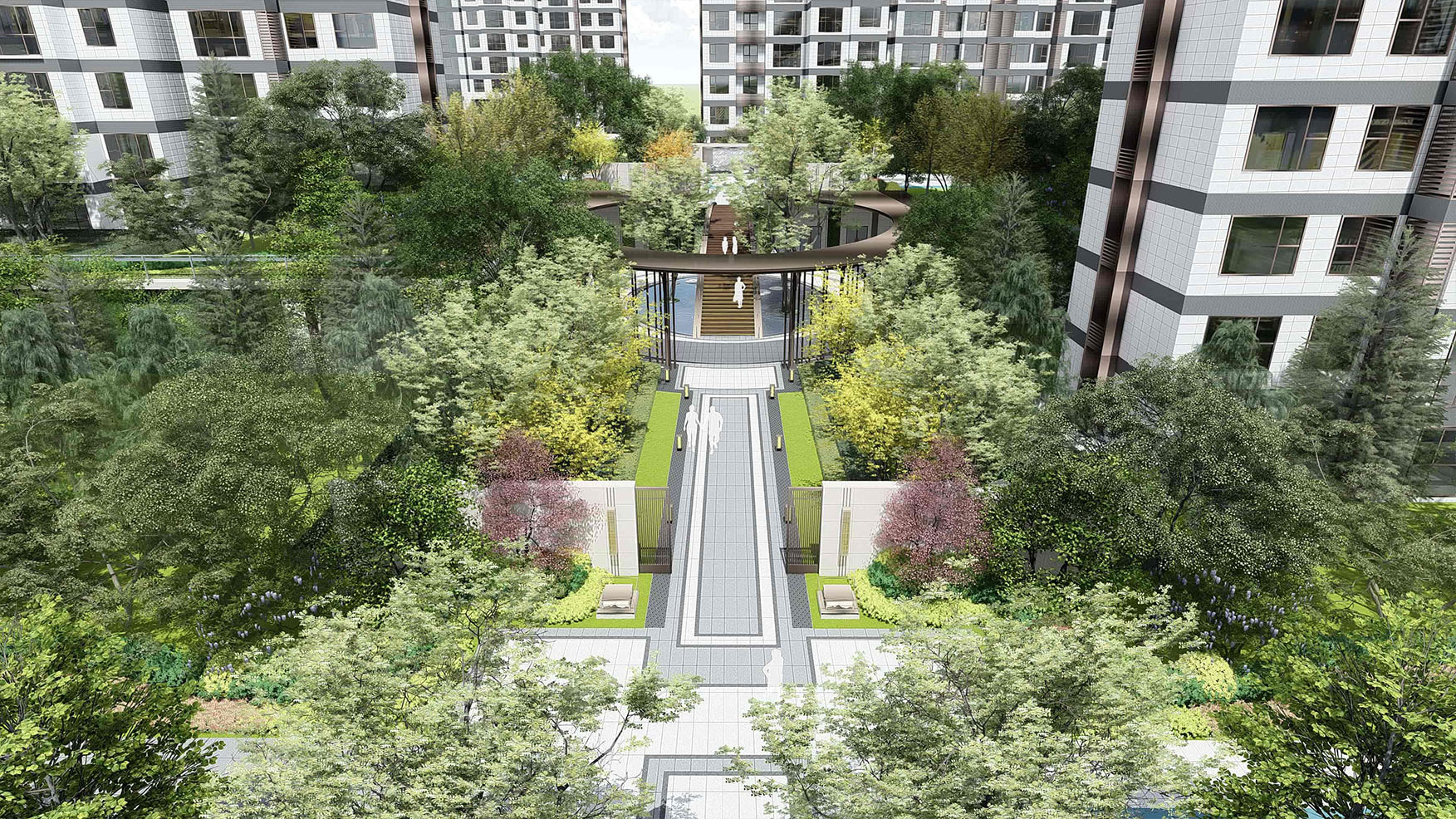 項目位于甘肅蘭州城關區(qū),作為絲綢之路經濟帶的重要節(jié)點城市,也是黃河唯一穿城而過的城市,蘭州山川巍峨壯麗,府院文化流傳深遠。項目尊崇禮序,層層遞進,展開五重歸家體系,萃取千里江山圖山水意境,融于景觀節(jié)點;傳承現(xiàn)代府院之韻,回歸北方園林的神髓,造現(xiàn)代人文藝術的山居府院生活。
