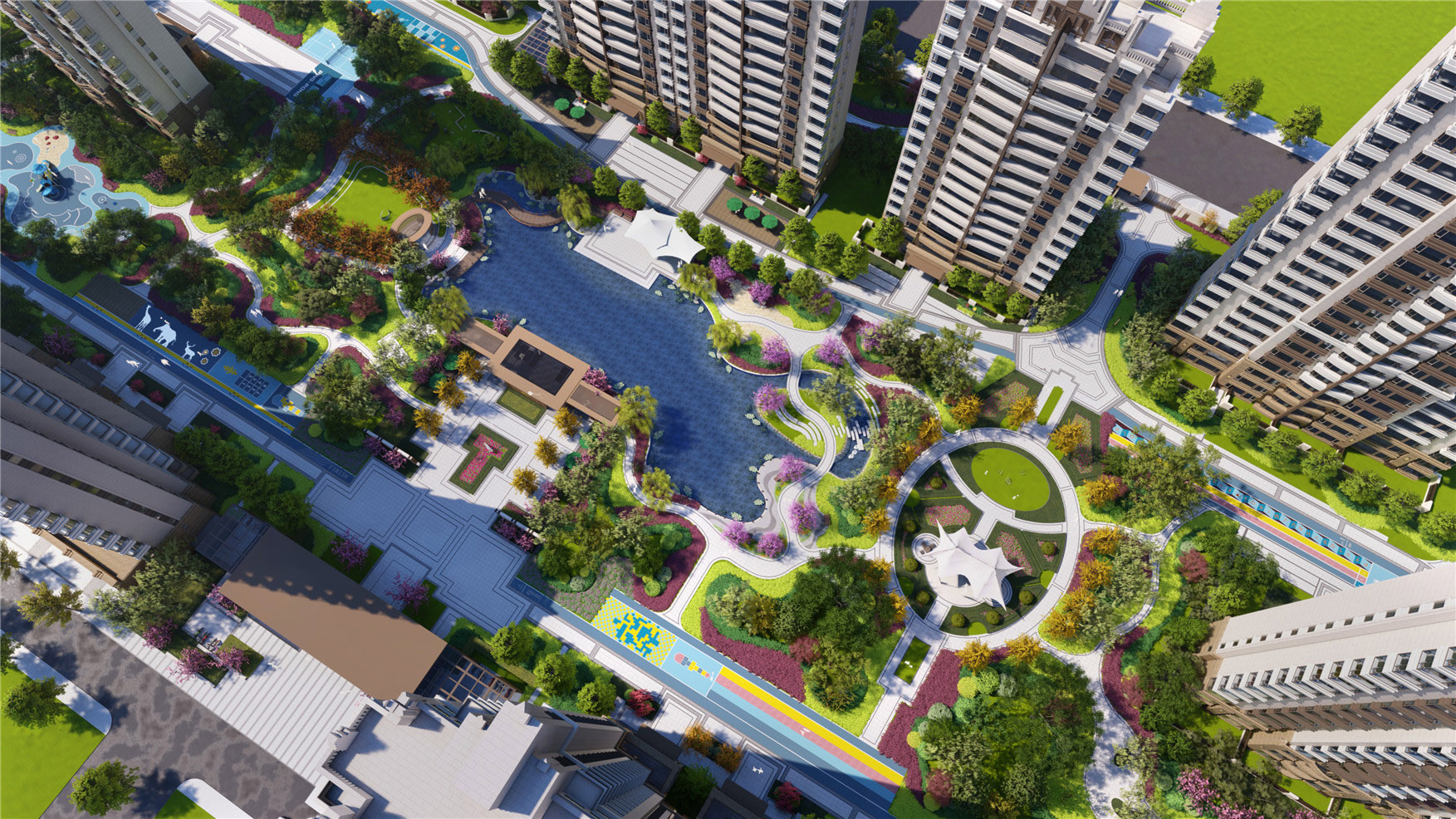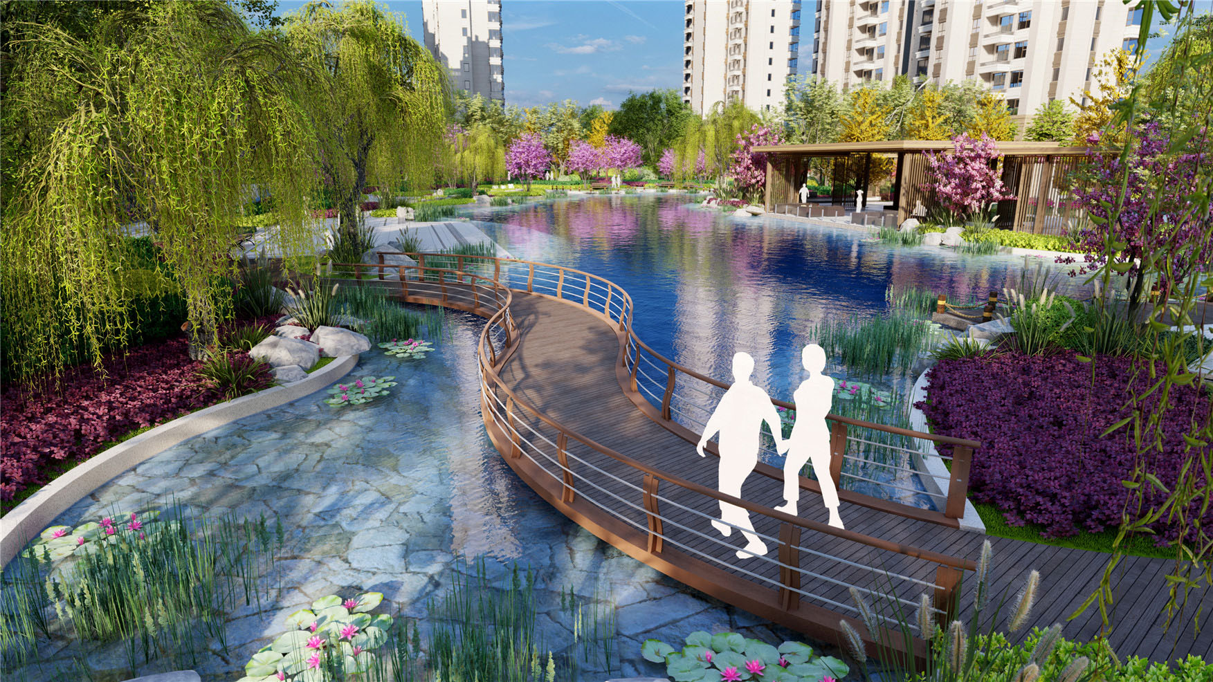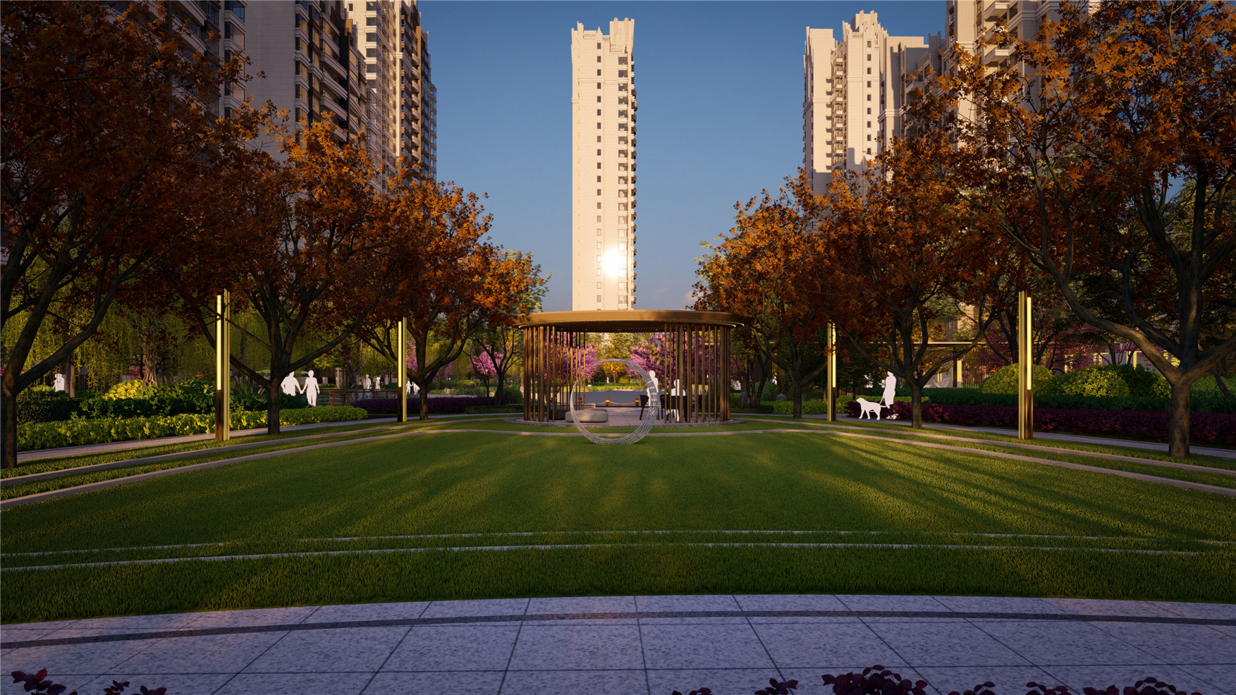 項目位于甘肅省中部的白銀市,當(dāng)大都會遇上千島湖,城市與自然的碰撞,以花千島為主題打造現(xiàn)代繁華城市中的輕奢湖居公園社區(qū),讓每一次回家都是穿越公園的旅行。景觀酒店式歸家體驗(yàn),打造精品歸家道路。一條生態(tài)休閑健身環(huán)和歸家流線,高綠植覆蓋的健身步道,豐富而齊備的沿線活動,分段休息空間設(shè)置,兩條典雅尊貴景觀大軸,酒店式輕奢入口,儀式感禮賓樹陣,精致親水會客廳,七大輕奢浪漫花島,功能復(fù)合的人性化空間,全齡化的使用訴求,不同空間界定出不同的圈層生活。價值認(rèn)可由“禮序空間”到“自然風(fēng)景”層層遞進(jìn),節(jié)節(jié)成景,讓住戶感受到一段充滿驚喜的歸家旅程。