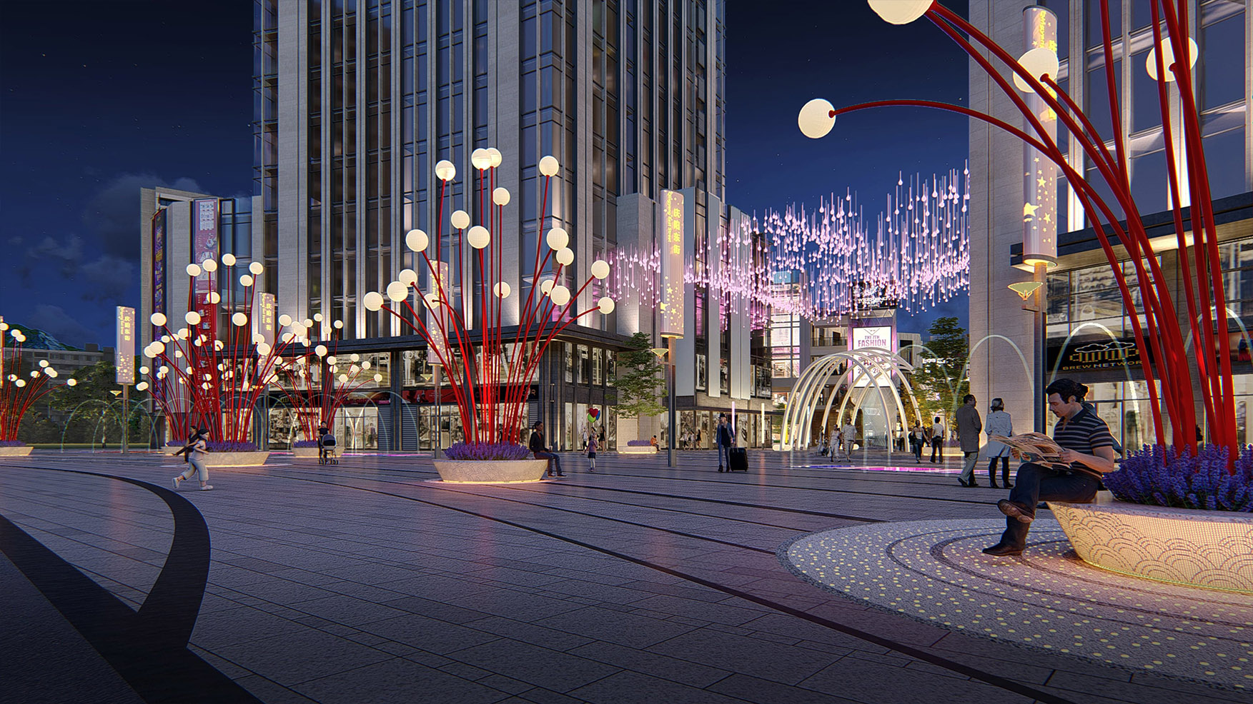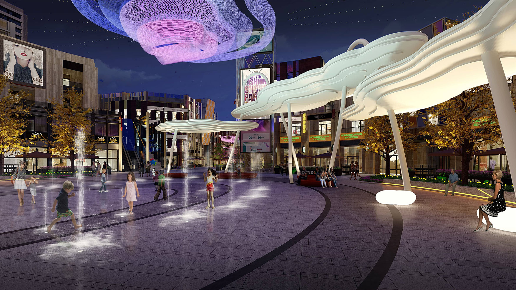 項目位于甘肅慶陽市西峰區(qū),項目中融入剪紙、皮影、香包、刺繡等中國元素,以“天空之城”為主題,通過視覺沖擊、儀式感的塑造演繹空間的故事性。項目設(shè)計用體驗創(chuàng)造場景,提取“星河軌跡”和“北斗七星”元素,打造“星空隧道”、“時光隧道”、“螢火之森”、“七彩星光廣場”、“云朵廣場”、“星空吧”、“夢幻島”多個景觀點,開啟了一場奇幻之旅。