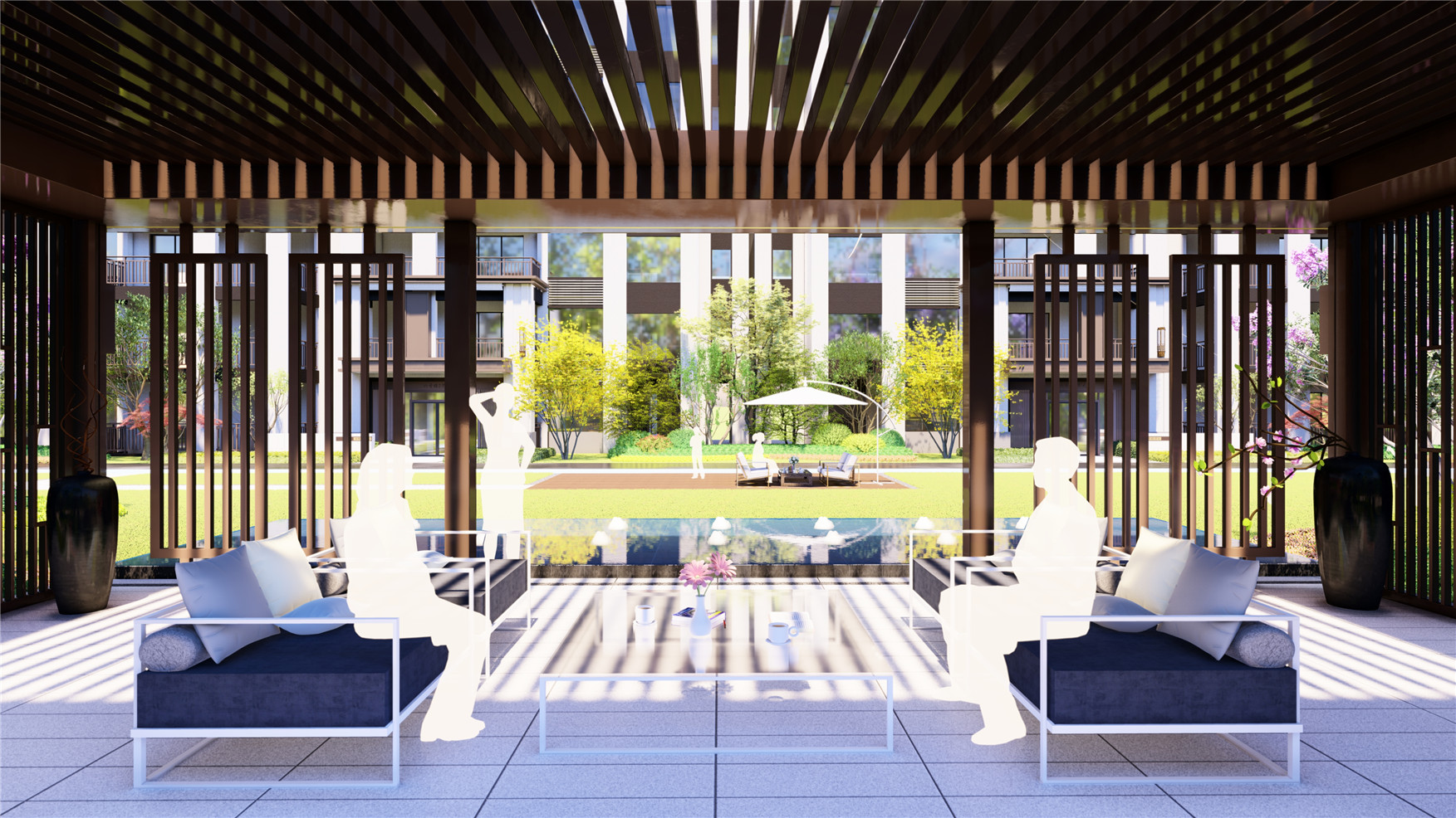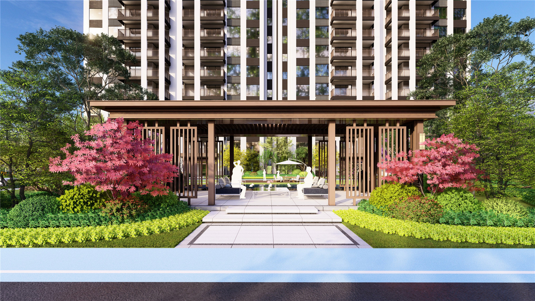 孔子說:“智者之樂,就像流水一樣,悠然、淡泊 ——仁者之樂,就像大山一樣,崇高、安寧。古人將最美的棲居營(yíng)造于群山秀水之間,“智者樂水,仁者樂山”是對(duì)中國(guó)傳統(tǒng)生活、文化最真切的總結(jié)。中國(guó)歷史四大書院之一的岳麓書院,建筑在布局上采用中軸對(duì)稱、縱深多進(jìn)的院落形式,體現(xiàn)了禮序遞進(jìn)的儒家思想,項(xiàng)目設(shè)計(jì)由“門、廳、園、院、榭”依次展開,以園林軸線空間打造品質(zhì)、多元的空間感受。提取山形、水流、云紋、月洞之美,營(yíng)造具有東方文化底蘊(yùn)的詩意甲第生活。傳承儒家思想,居山水之間,賞云月之美,享風(fēng)雅生活。